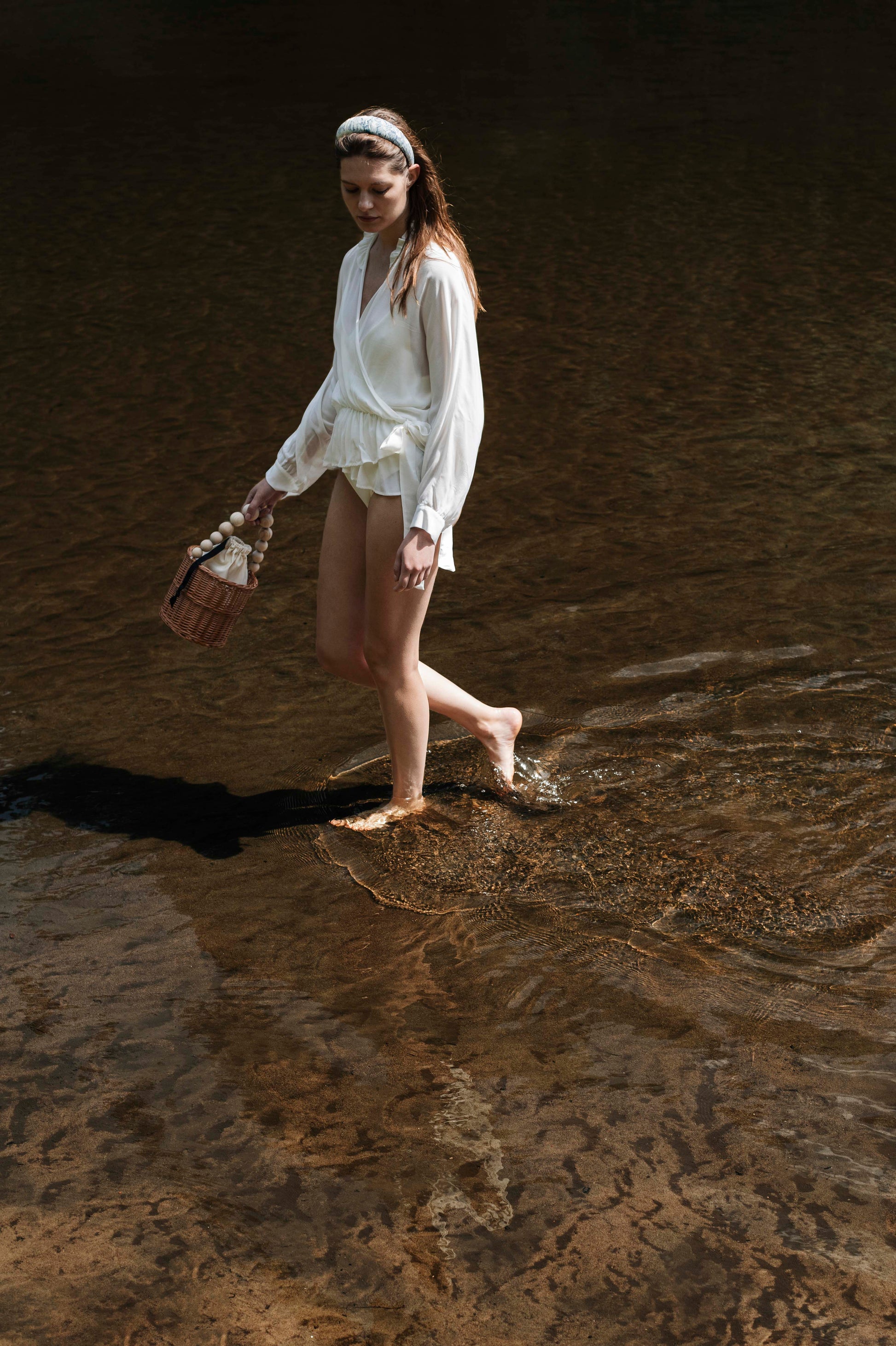 The bag is a precisely handmade wicker basket in a cylindrical shape. The handle is made of wooden balls. Order with an organiser - Inside Textile Soul. It was handmade in Poland. We recommend it as a perfect complement to everyday styling, a small basket for the beach or a timeless addition to an evening outfit. A bag is decorated with a metal tag with the Roboty Ręczne logo.